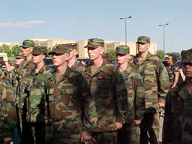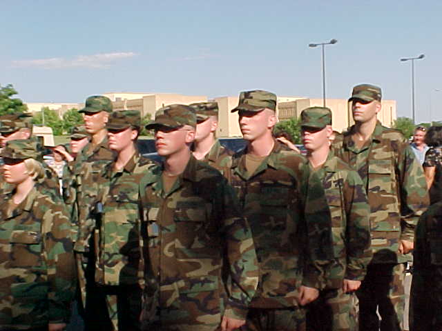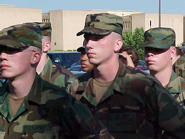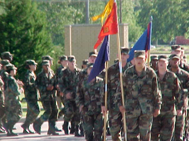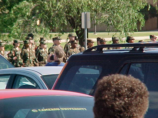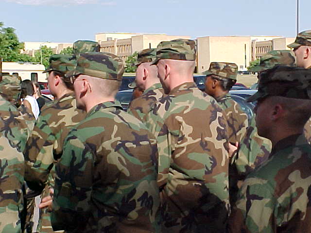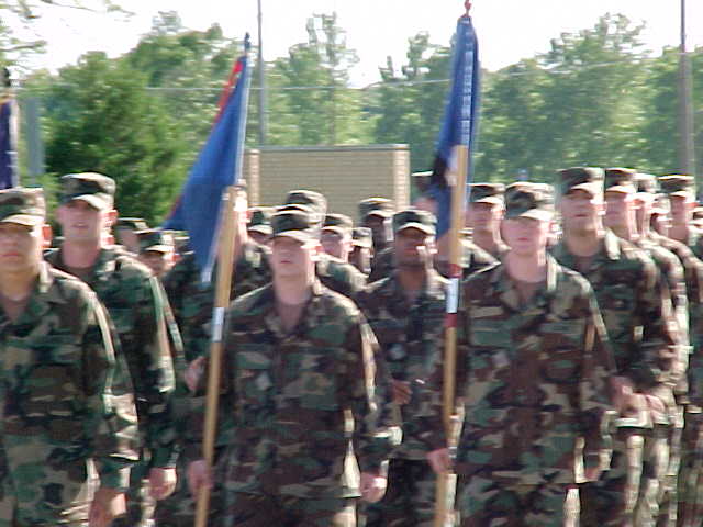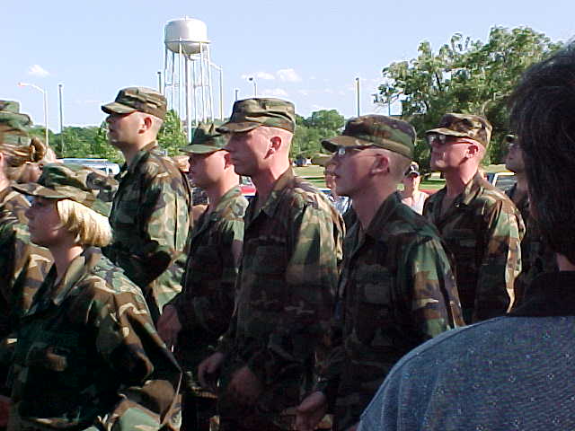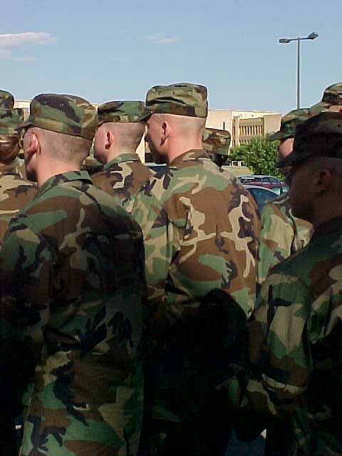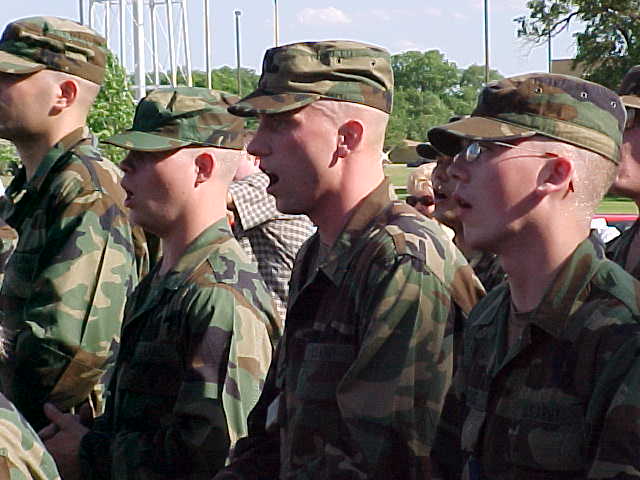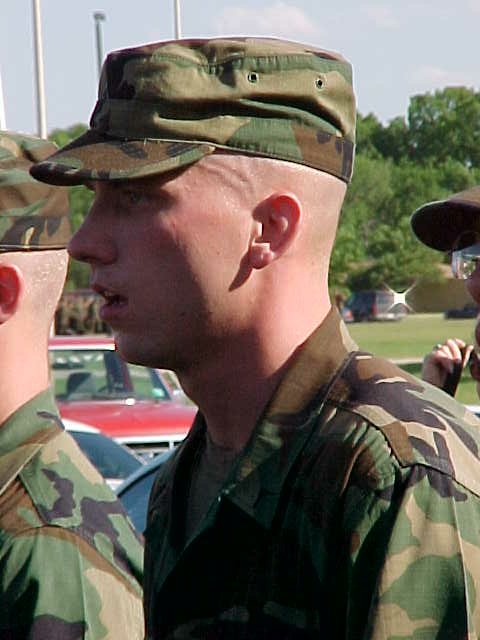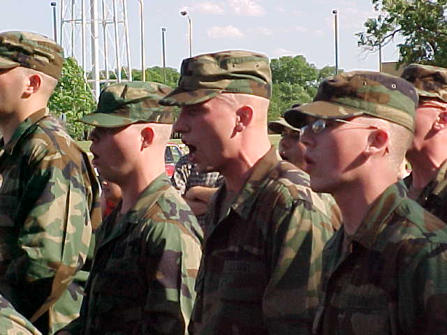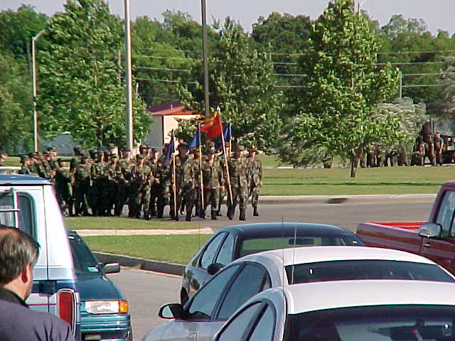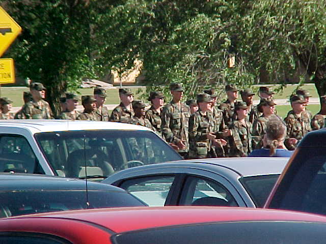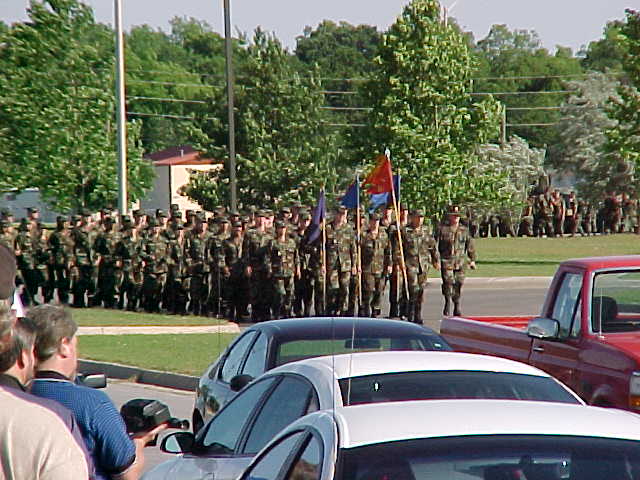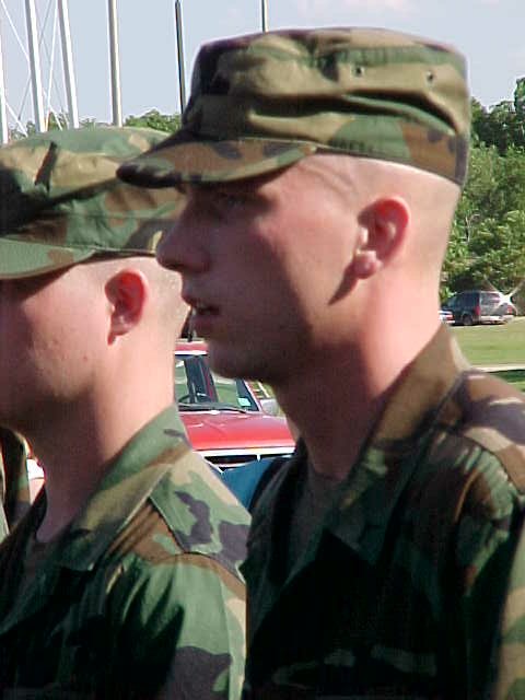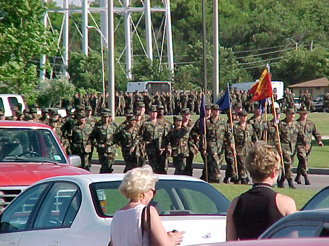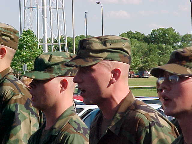 Bravo Company marched while calling candence from their barracks to the dinner. You could hear them get louder and louder as they got closer to us. As luck would have most parents moved towards them, we stayed where we were and they stopped right in front of us. We lucked out again, because Tony ended up two feet in front of us.